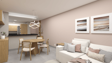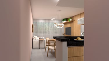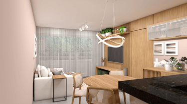 O projeto do apartamento Alto da Mata traz um layout que valoriza claridade e a ventilação natural, proporcionando um ambiente agradável e acolhedor.