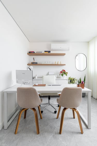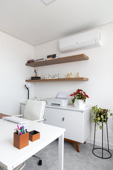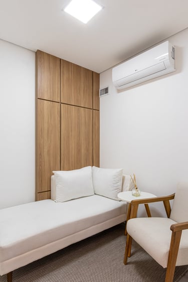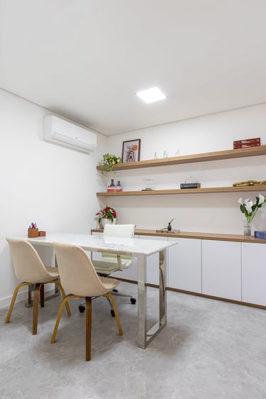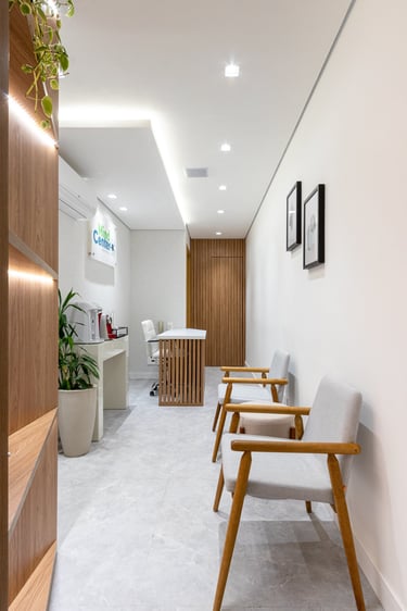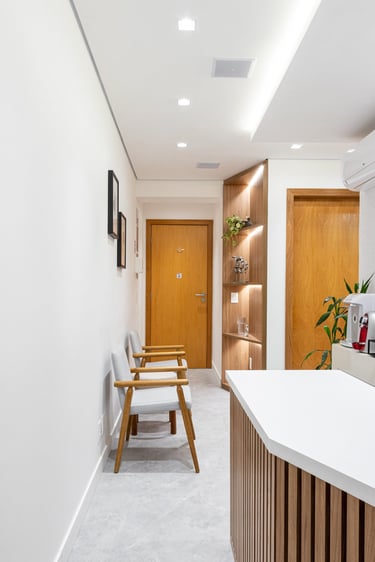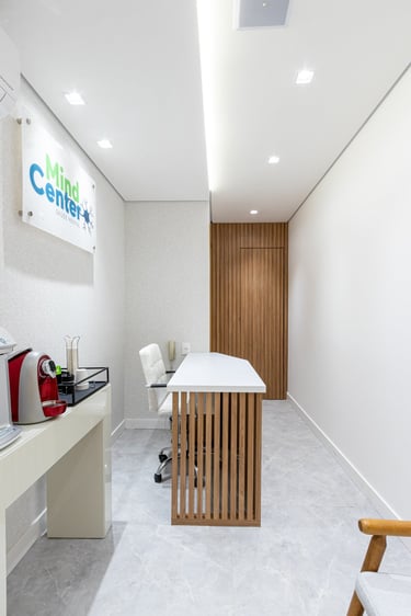 Neste projeto de clínica de psiquiatria o objetivo foi proporcionar um espaço acolhedor e tranquilo aos pacientes e profissionais.