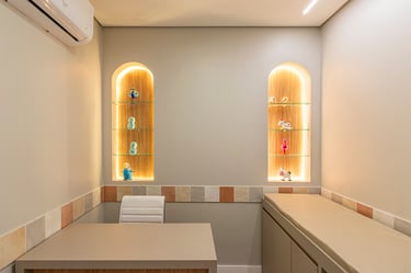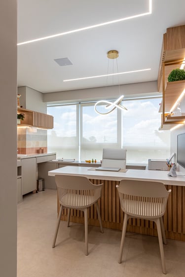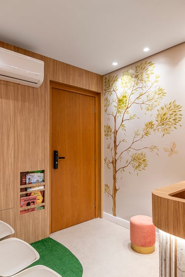 A proposta do projeto foi criar um consultório médico atemporal e encantador para pacientes de todas as idades, que transmitisse nos ambientes o cuidado e a delicadeza.
