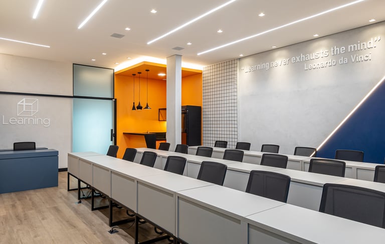 Projetamos ambientes que inspiram o aprendizado, promovendo funcionalidade e conforto. Cada detalhe é pensado para criar espaços acolhedores e eficientes, que atendam às necessidades de alunos e professores, potencializando a experiência educacional.