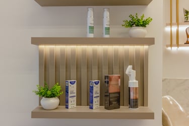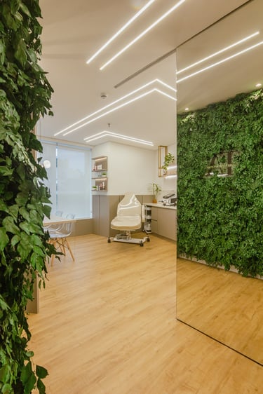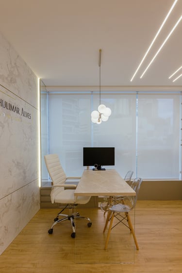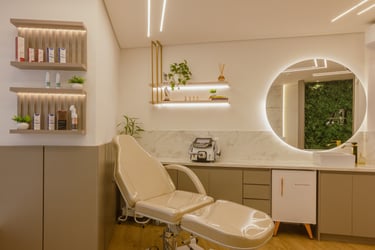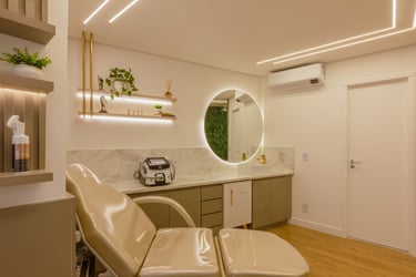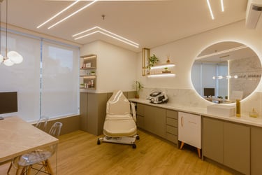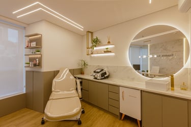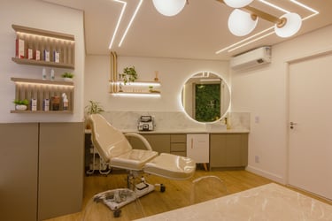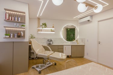 O consultório possui 25m² e é destinado a atendimentos e cursos na área de estética, com foco em remoção de pigmentos.
